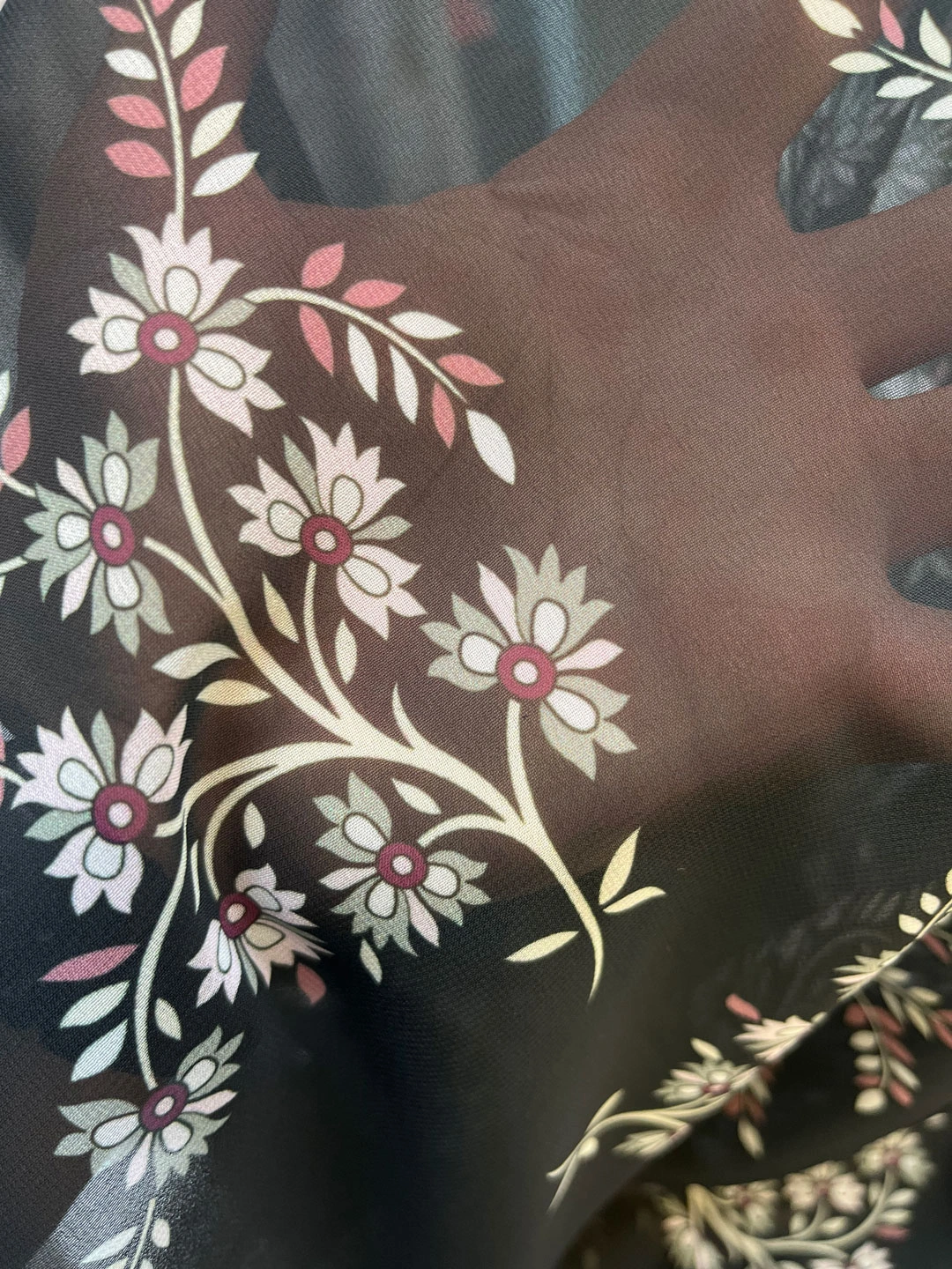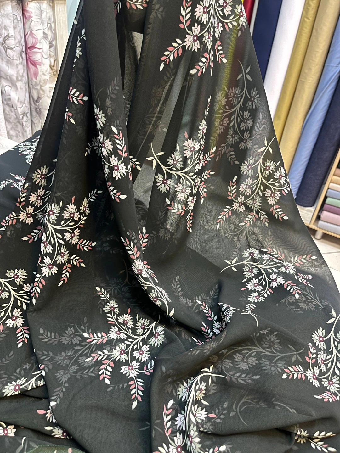 جنس پارچه : پارچه حریر ژورژت، طرح گل