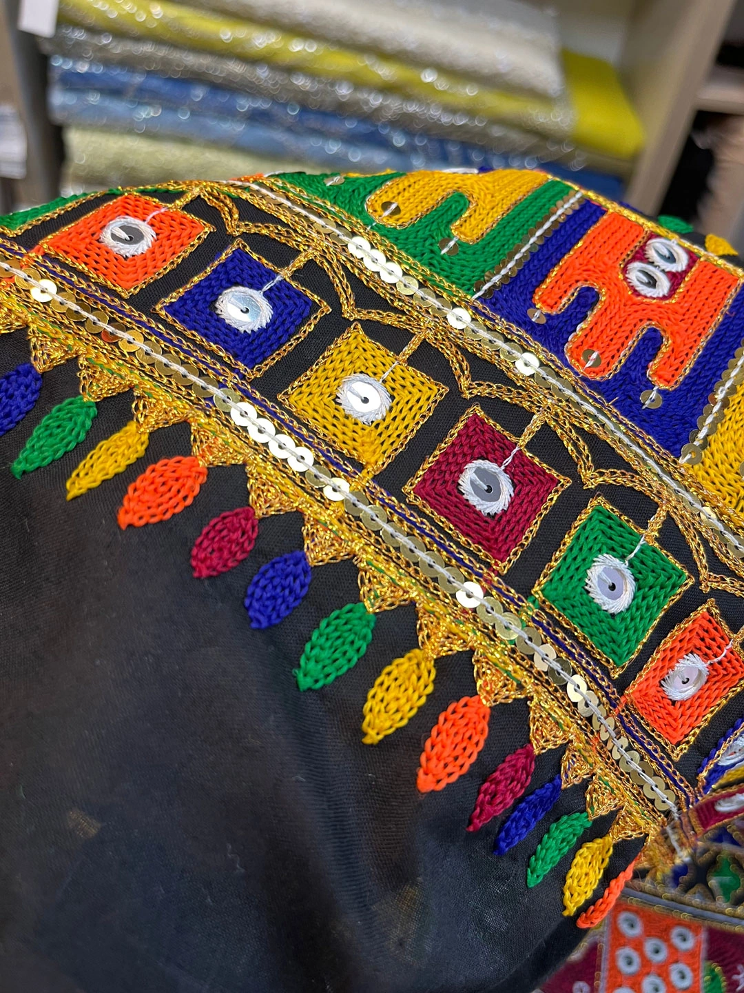 جنس پارچه : پارچه نخ لینن سوزندوزی_ طرح منجوق